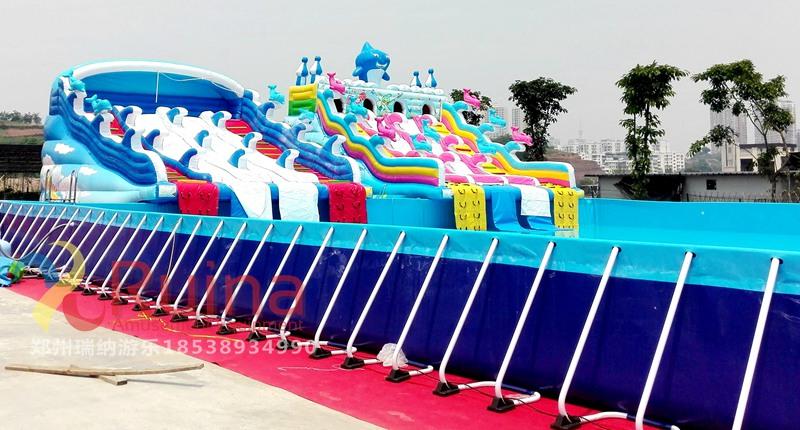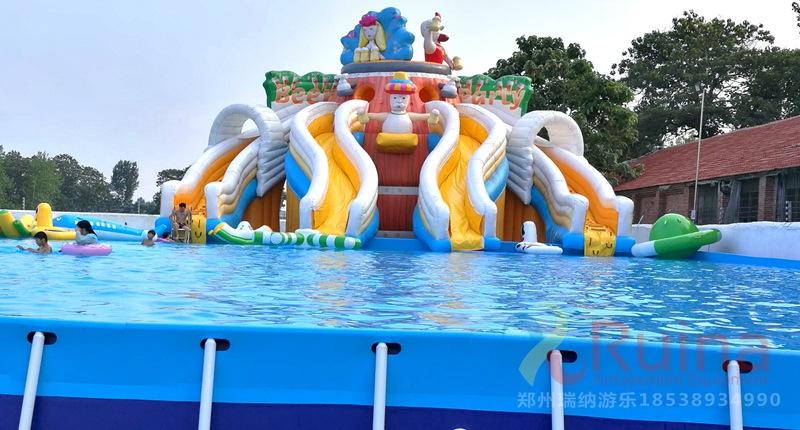 3、支架游泳池的游玩方式多樣,支架水池即可以和一些動物卡通人物造型的水上滑梯組合使用,還可以將不同規(guī)格的支架泳池通過各種充氣模型玩具組合,組成一個集娛樂性、競賽性的水上沖關(guān)闖關(guān)設(shè)備,可以調(diào)整支架游泳池位置來改變水上沖關(guān)關(guān)卡設(shè)置,豐富水上沖關(guān)的趣味性和耐玩性。
